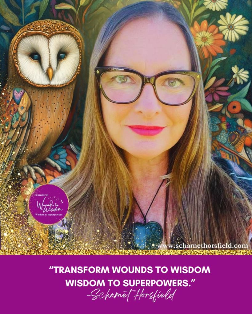 Transform Wounds to Wisdom Wisdom to Superpowers™ in order to Manifest your most abundant life, a life of your wildest dreams! ~Schamet Horsfield