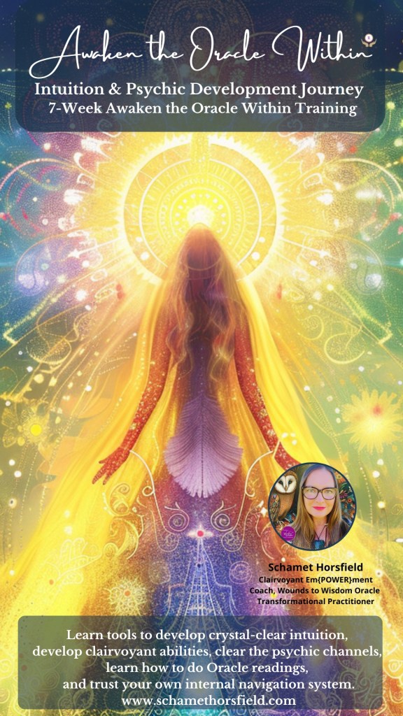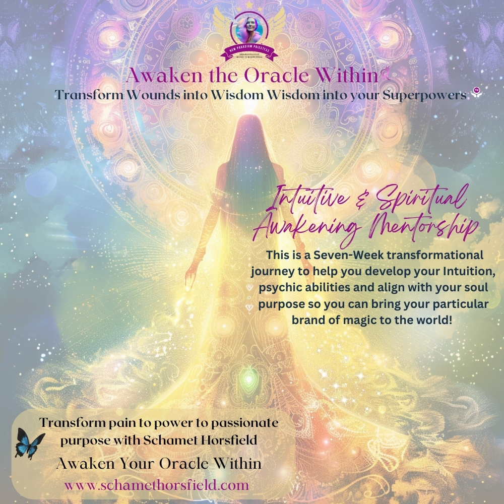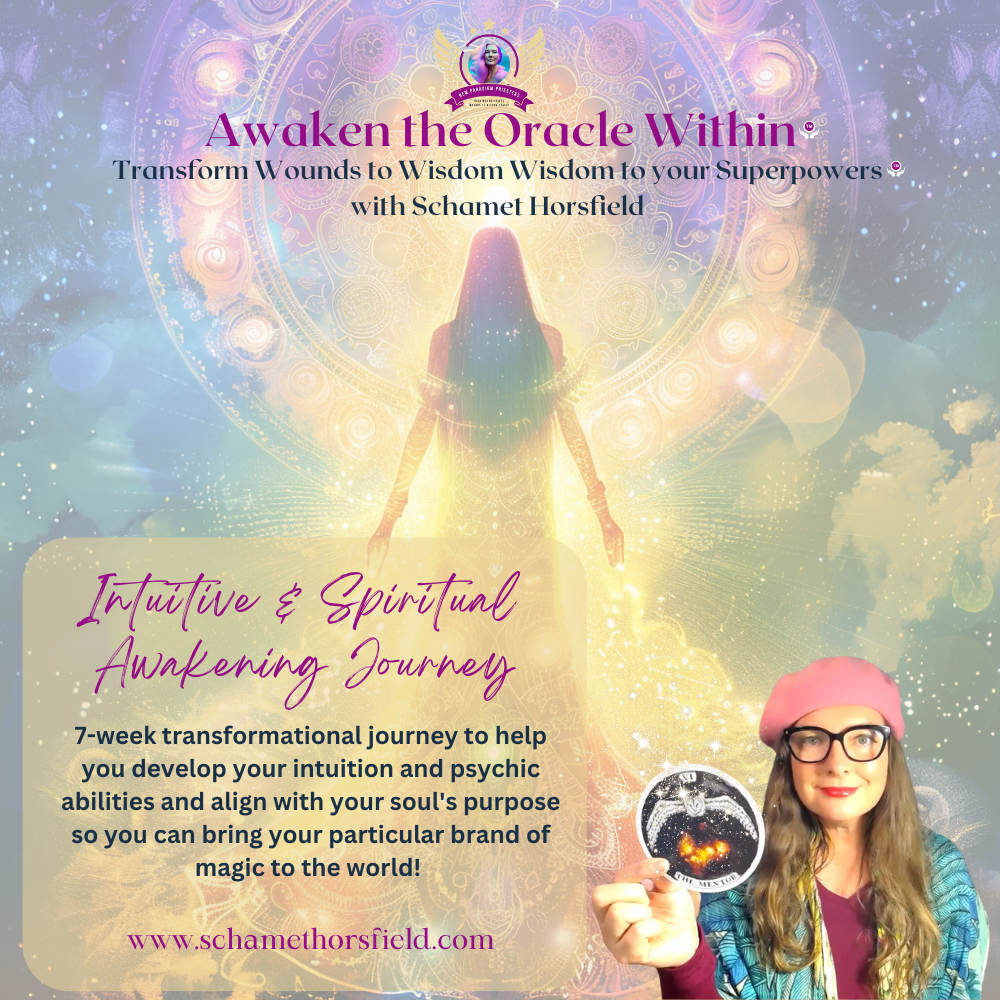 Awaken the Oracle Within® is an Oracle deck and also a 7-Week Intuitive & Psychic Abilities Development Training mentored and guided by Schamet Horsfield.